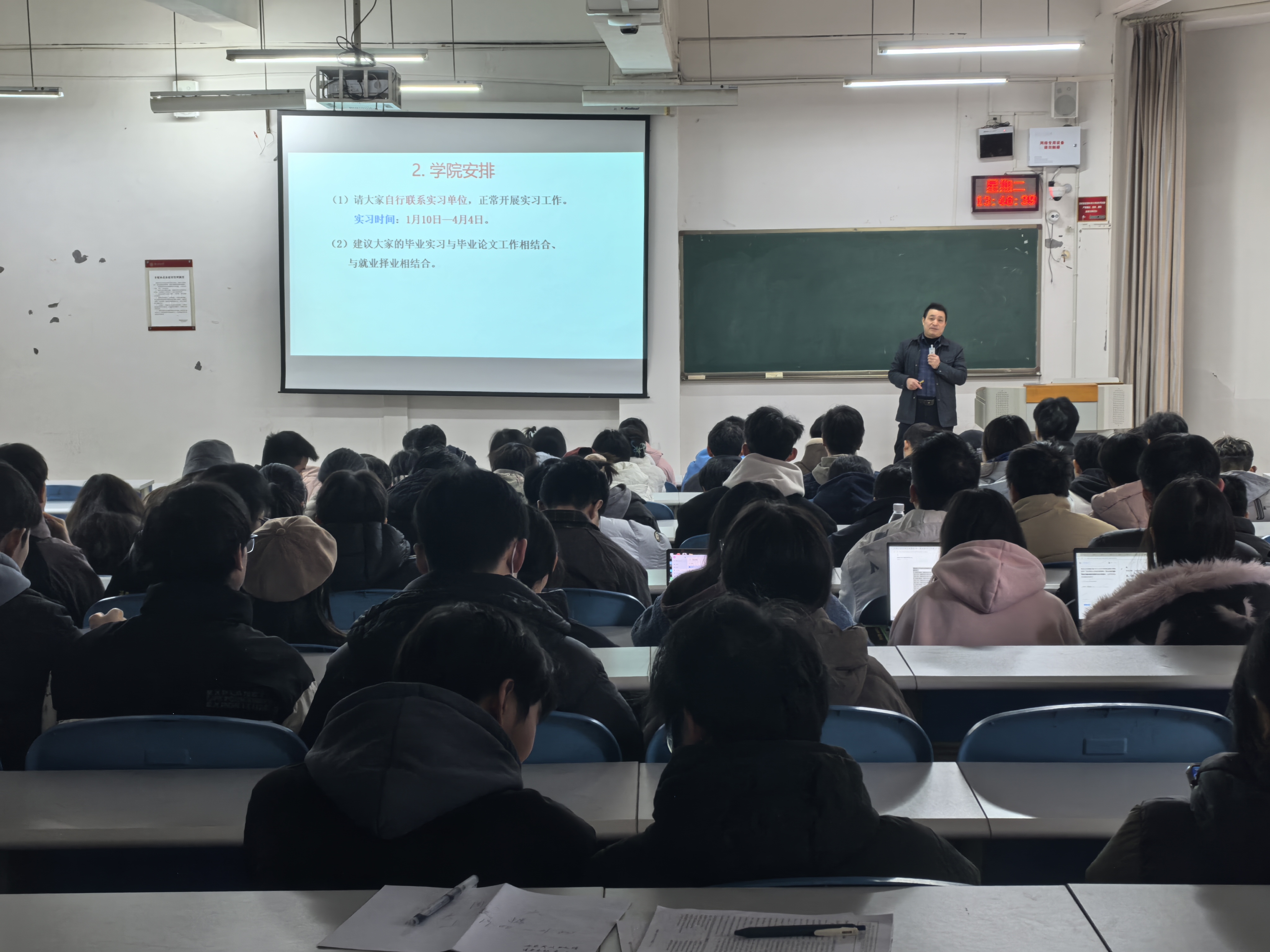 12月23日,数学与统计学院在进学楼阶102召开2022级本科生毕业实习动员会,学院应用数学系主任冯大河做了实习动员,2022级全体学生参加。会上,冯大河对...
