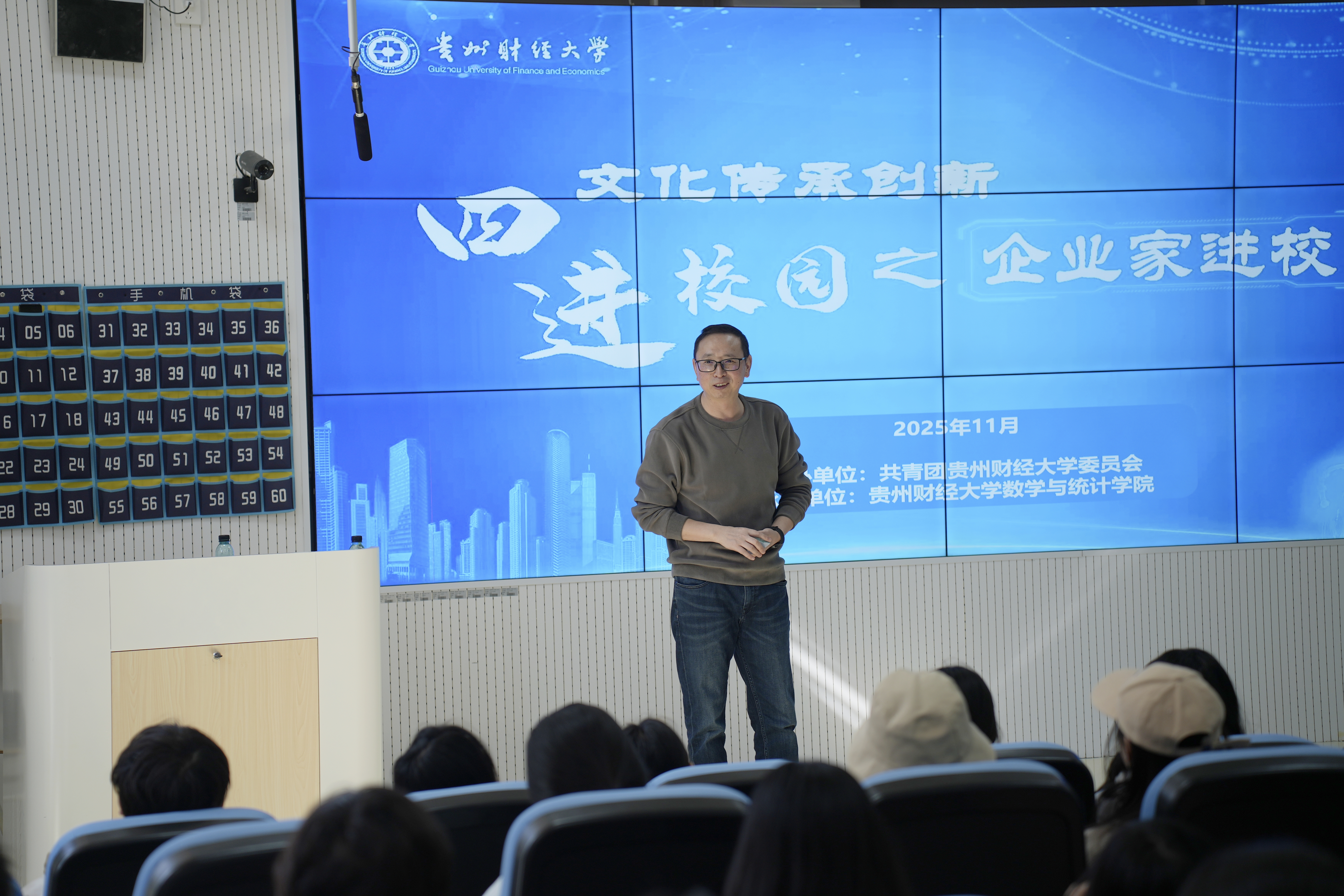 11月21日,数学与统计学院在进学楼103教室开展企业家进校园活动,我校1996级财政专业优秀校友、安顺西秀富民村镇银行党支部书记宋具江应邀做讲座,数学...