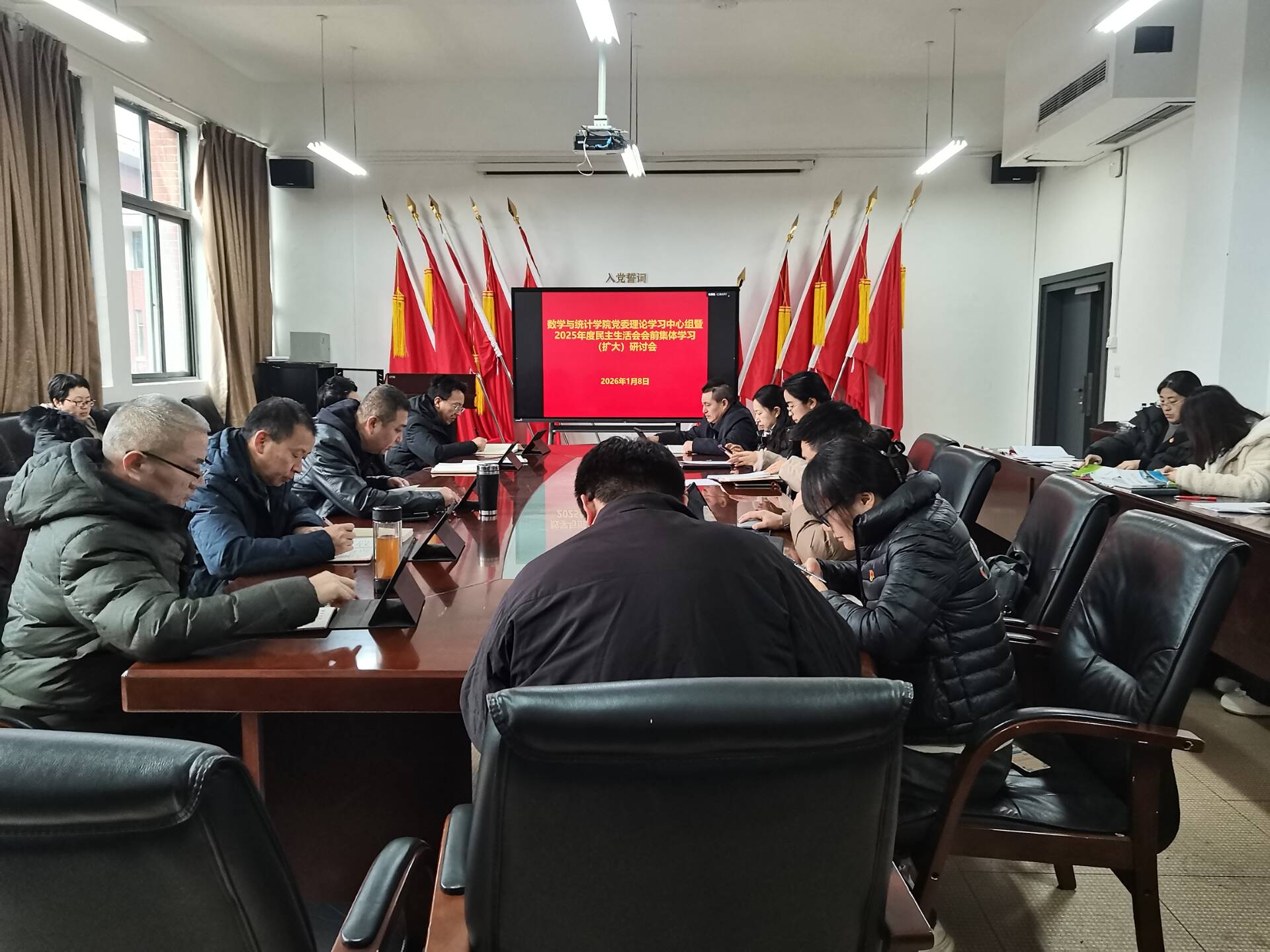 1月8日上午,数学与统计学院党委理论学习中心组暨2025年度民主生活会会前集体学习研讨会在志学楼331会议室举行。学院党政领导班子成员及各科室、系(部...