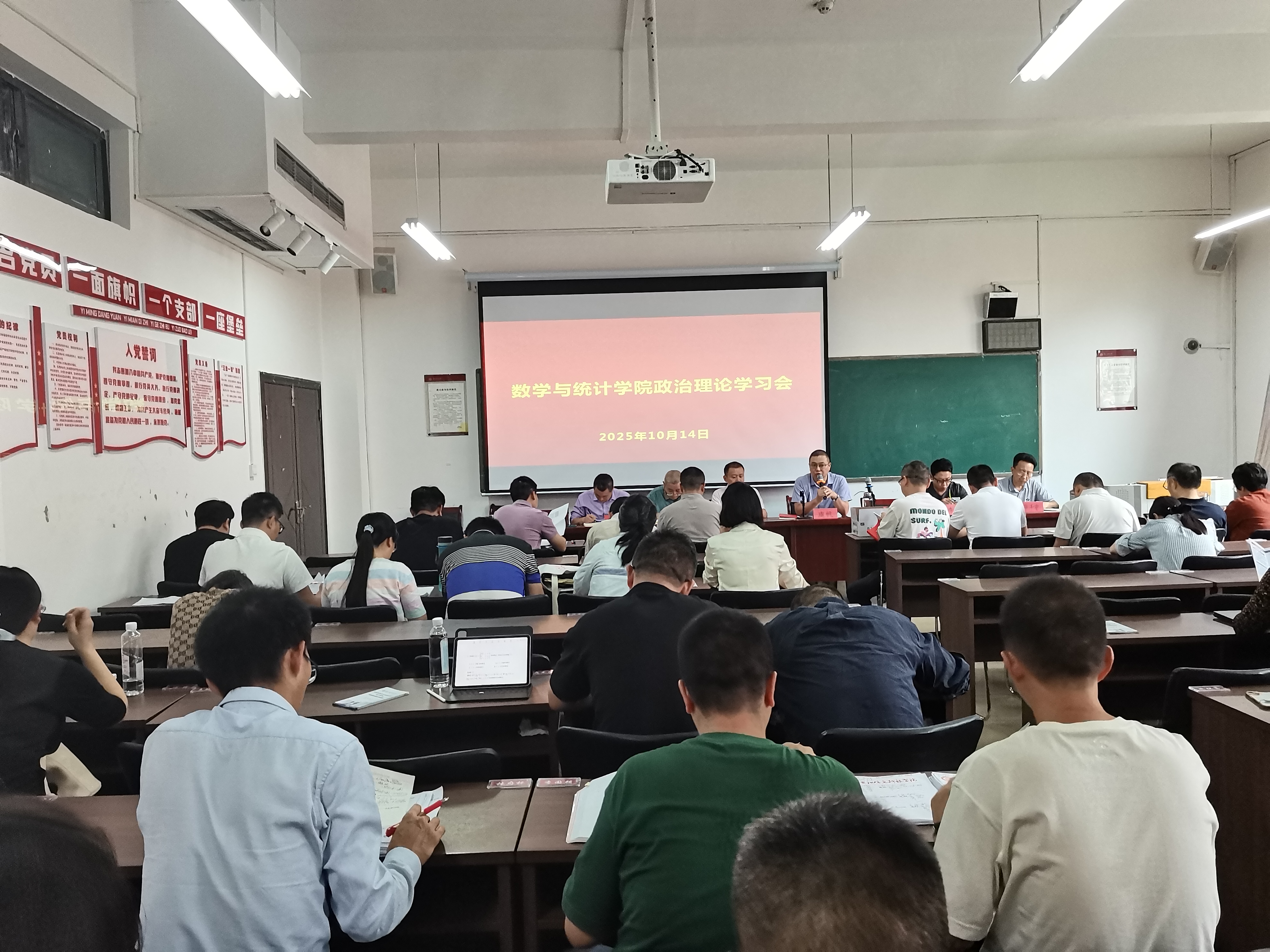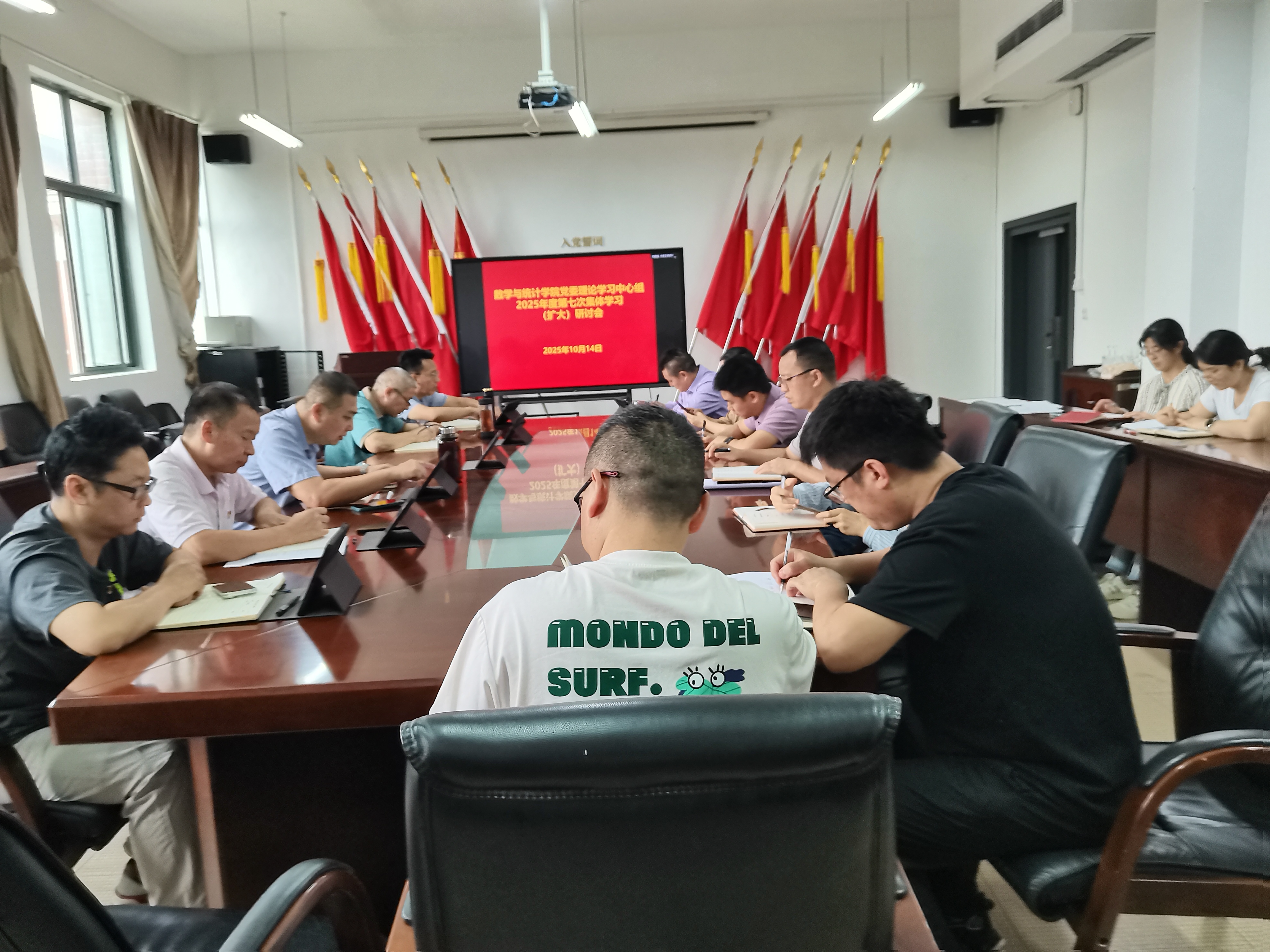 10月14日上午,数学与统计学院党委理论学习中心组2025年度第七次集体学习(扩大)研讨会在志学楼331会议室召开。学院党政领导班子、各科室负责人、各支部书记、各系(部)主任参加,学院党委书记虞帆主持。