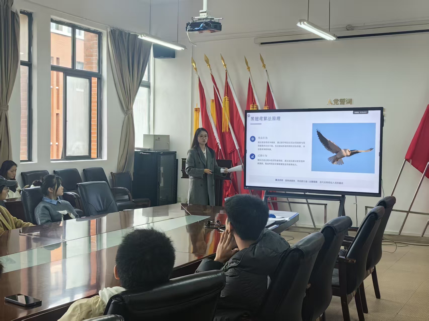 在研究生报告阶段,学院6位研究生分别汇报了各自领域取得的进展和成果,包括基于自适应权重改进的黑翅鸢算法及其工程应用、Power of Continuous Triangular Norms with Application to Intuitionistic Fuzzy Information Aggregation、Monotonic interval-valued OWA operators and Choquet integrals under generated admissible orders、Research on High-Standard Numerical Schemes for High-Order PFC-FCC Models、Multi-Strategy Enhanced Northern Goshawk Optimization Algorithm for Solving Nonlinear Equation Systems、On TheInequalities Of The J-th Mixed Cone Volume等方面。
