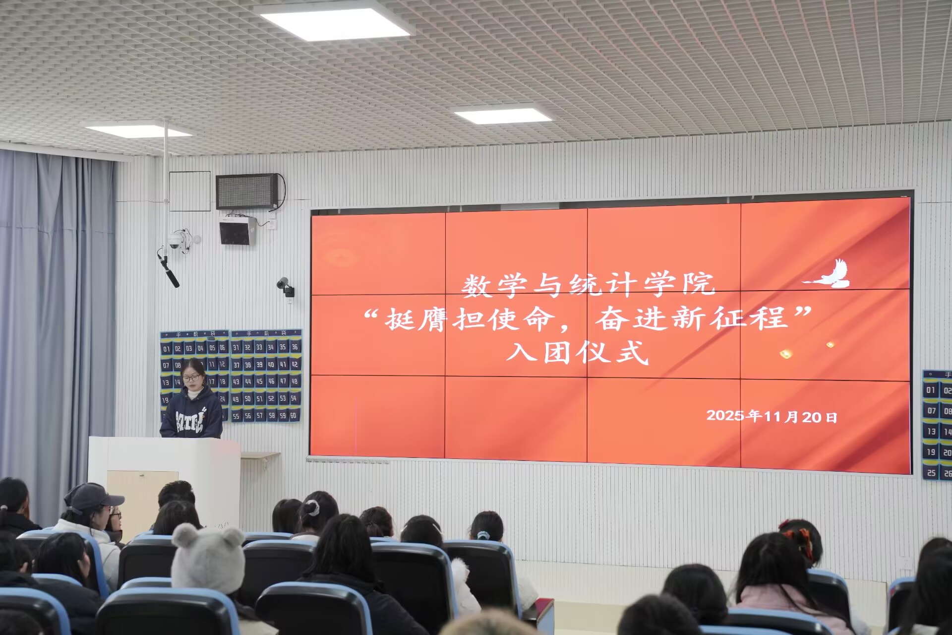 为进一步加强共青团组织建设,引导青年学生坚定理想信念,11月20日,数学与统计学院组织开展了“挺膺担使命,奋进新征程”2025年新团员入团仪式,学院党委副书记李书、团委书记贺婧及各班级代表百余人参加。
