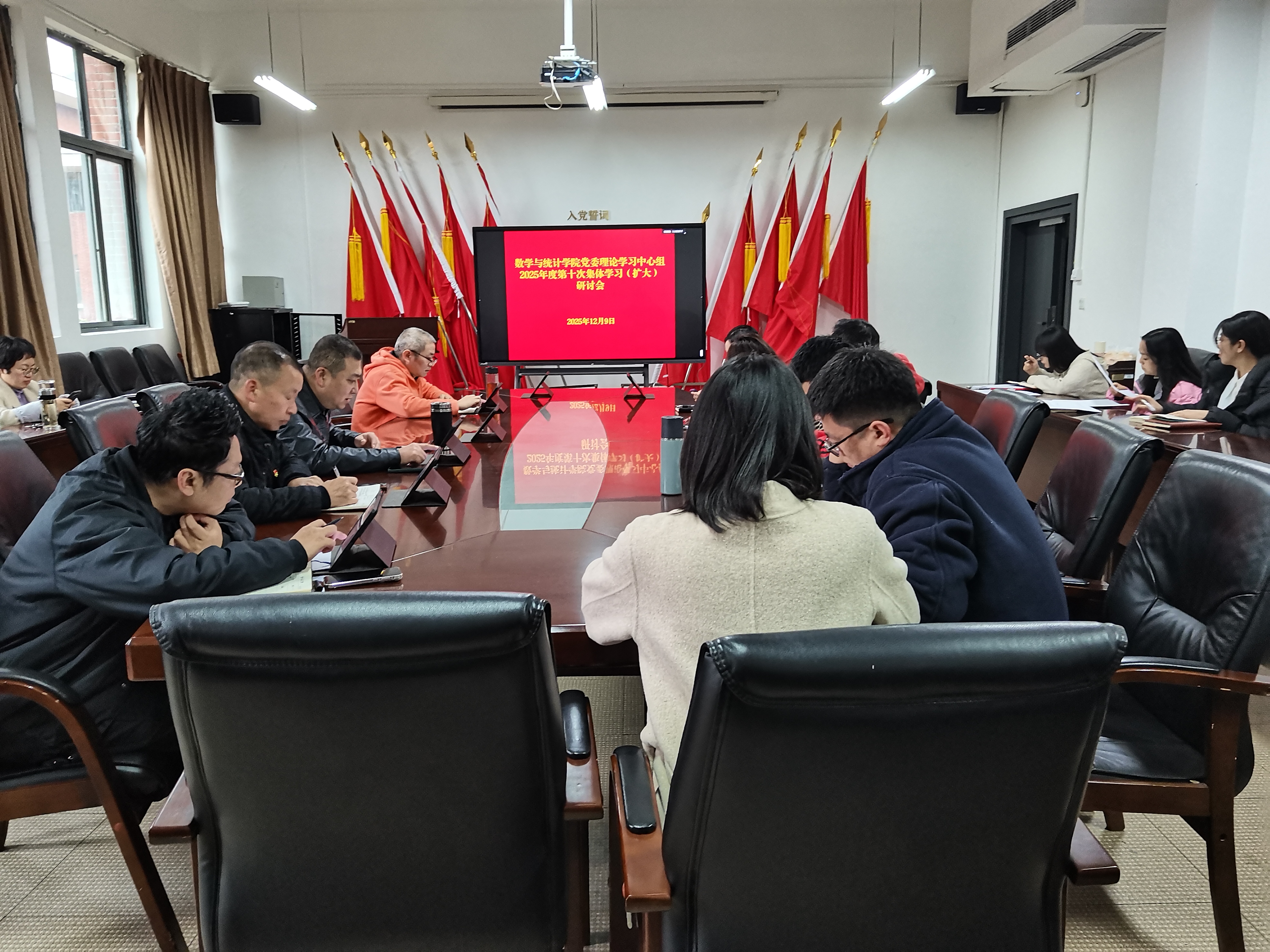 12月9日上午,数学与统计学院党委理论学习中心组2025年度第十次集体学习(扩大)研讨会在志学楼331会议室召开。学院党政领导班子、各科室、系(部)负责人、各支部书记参加,学校党委委员、学院党委书记虞帆主持。