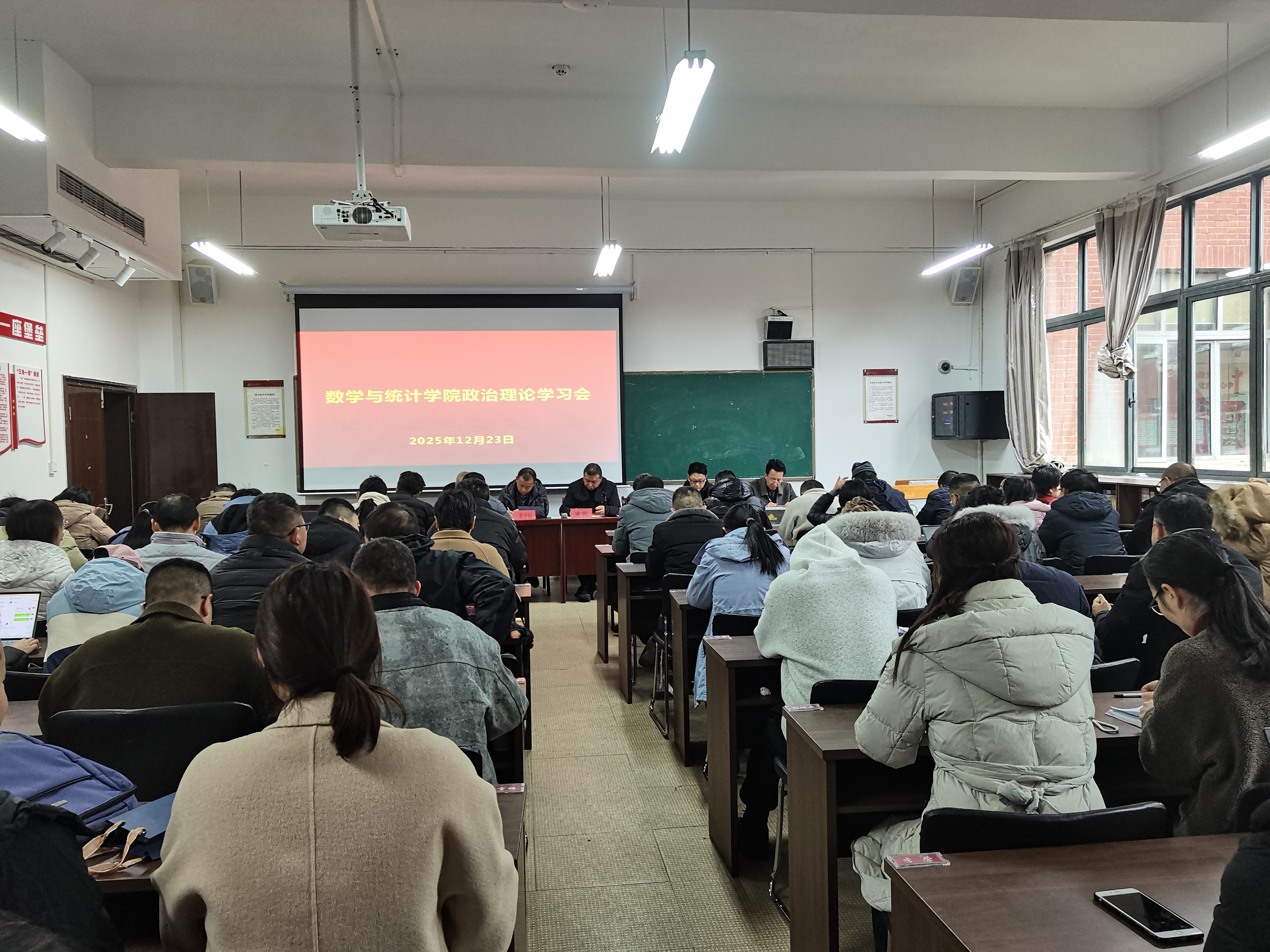 12月23日下午,数学与统计学院在志学楼306会议室召开2025年第十二次教职工政治理论集体学习研讨会。学院领导及全体教职工参加,学校党委委员、学院党委书记虞帆主持。