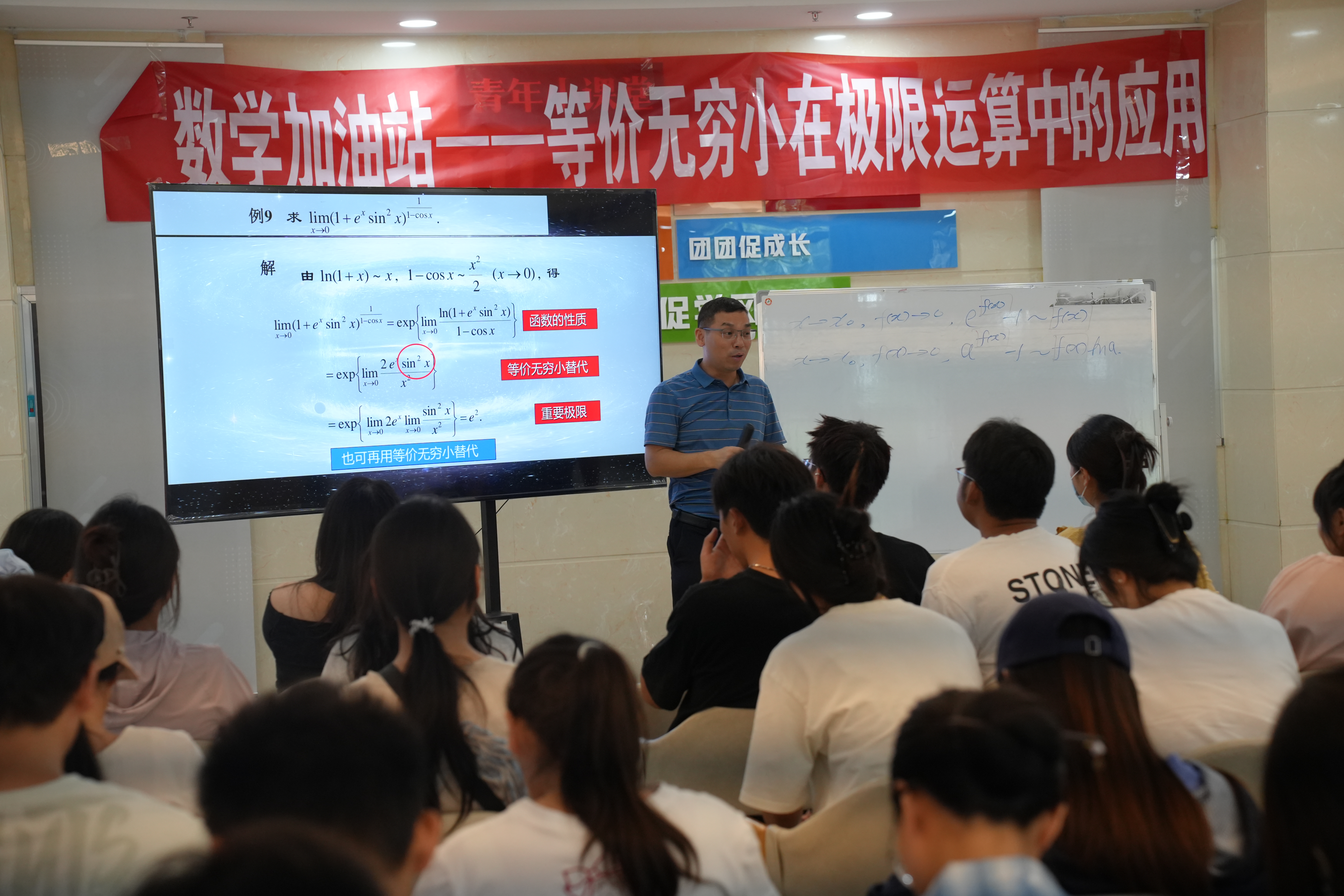 10月14日,数学与统计学院在学生活动中心一楼青年驿站开展第38期“数学加油站”活动,主题为等价无穷小在极限运算中的应用。学院周爱仁老师主讲,来自各学院同学参与。
